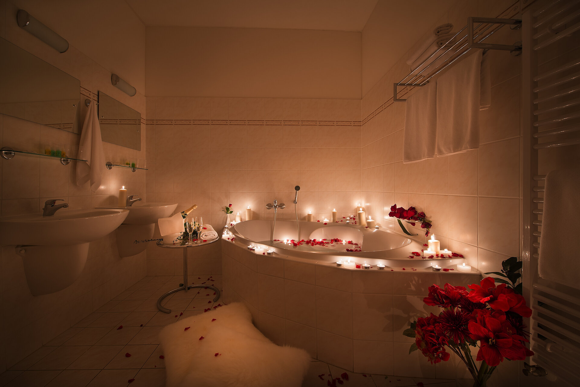 Item31, Link to Larger Image, Bathtub filled with rose petals and candles
