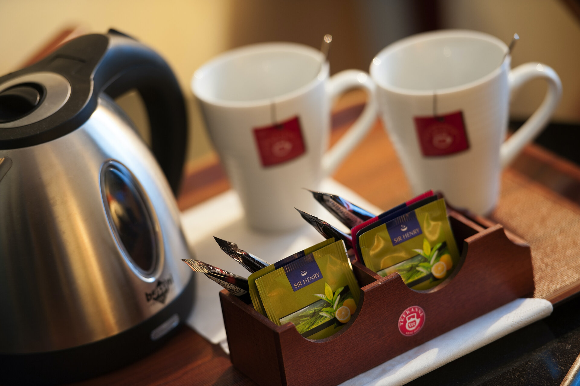 Item56, Link to Larger Image, Tea bag in holder next to two white mugs