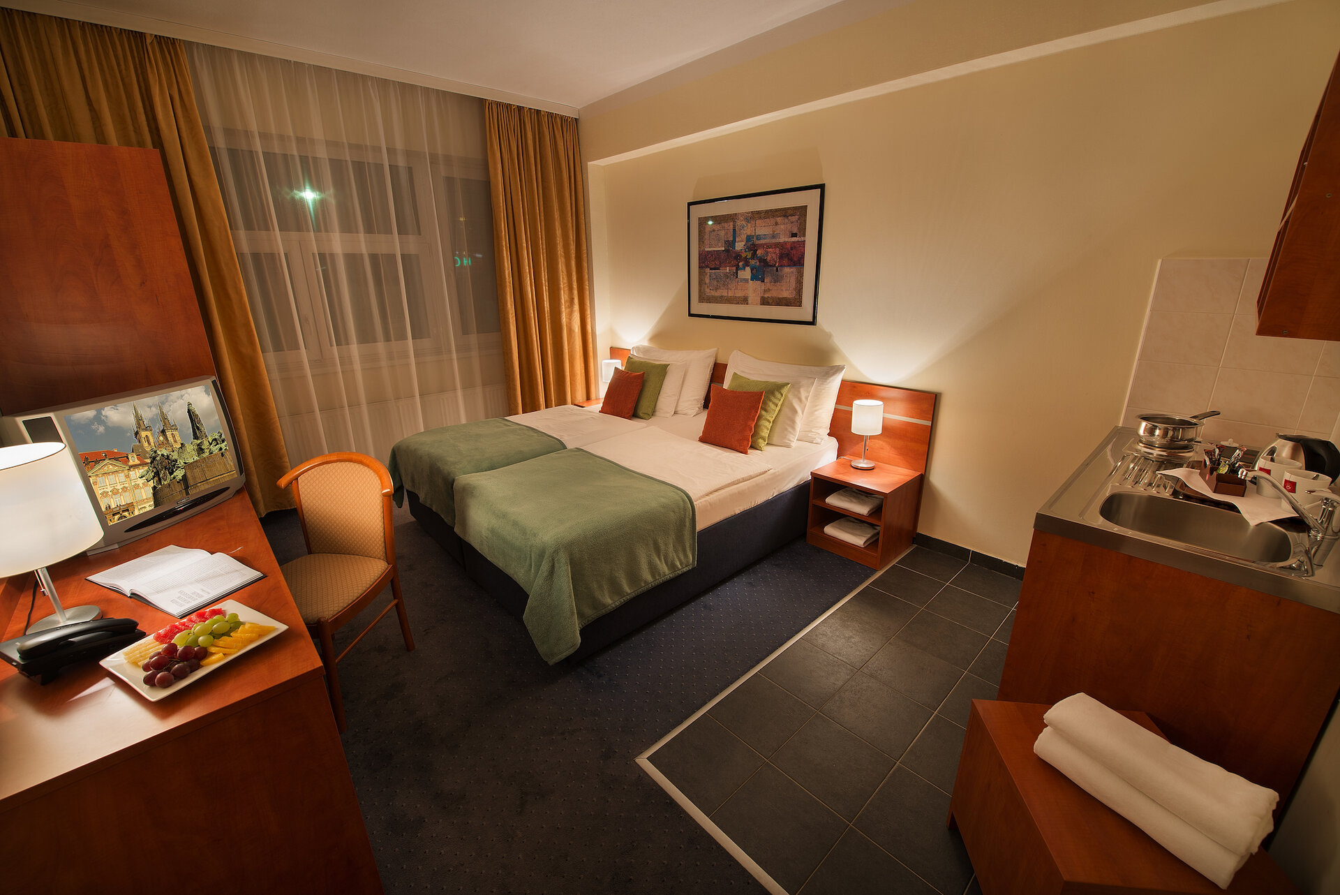 We offer accommodation in Standard, Business and Studio rooms for one or two people and multi-bed rooms or suites for families with children. There are 2 specially equipped rooms for the disabled.